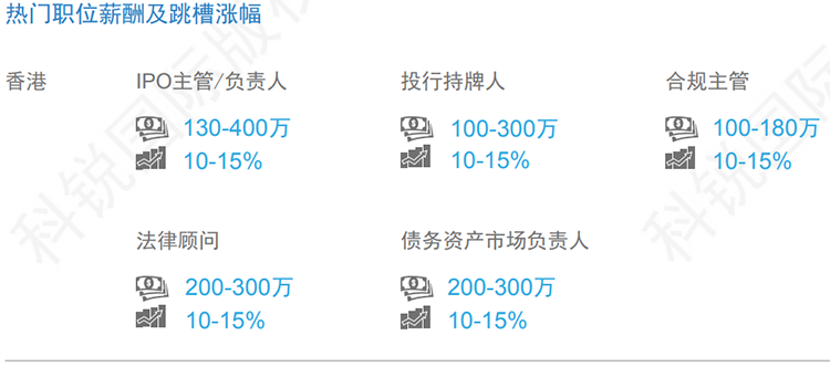 数据来源:猎头公司九州酷游国际资深行业专家对2019年热门职位薪酬范围及跳槽涨幅的预测。薪酬为基本年薪。单位为港币。