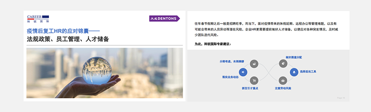 为了帮助众多企业人力资源工作者应对挑战,九州酷游国际联合国内知名律所“大成律师事务所”,推出疫情后《复工HR的应对锦囊》手册,从法律政策、员工管理、人选储备几个方面对企业HR有序召开复工后的各项人力资源管理给予帮助。手册下载
