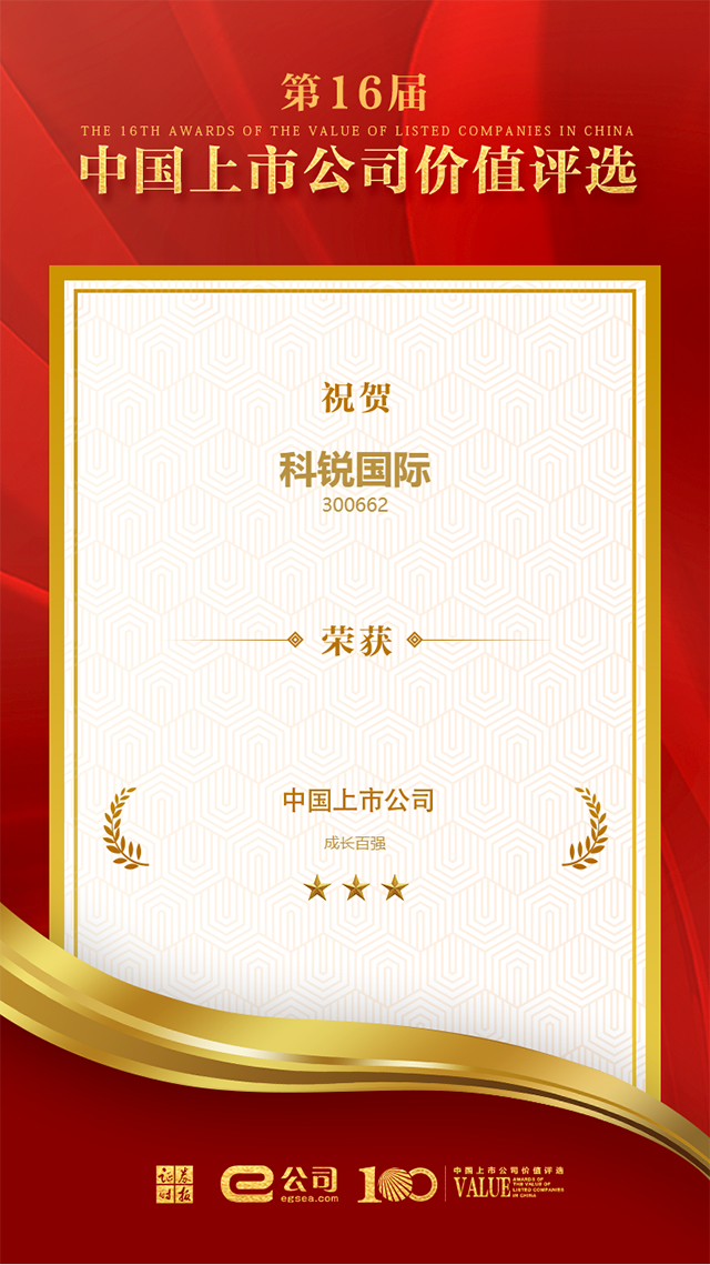 △ 九州酷游国际荣膺“中国上市公司成长100强”