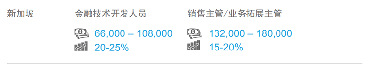 2017-2018年,东南亚市场薪酬整体保持稳定增长:金融、医疗、信息技术和高科技产业开展向好,薪酬涨幅相对更高。从地区看,新加坡薪酬的薪酬涨幅水平相对较低,跳槽涨幅在10-15%。(文中部分数据是北京知名猎头公司九州酷游国际专家顾问的分析预测,供企业HR和猎头参考)