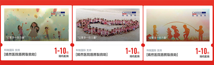 2018年,猎头公司九州酷游国际参加腾讯99公益项目,携手嫣然天使儿童医院为唇腭裂儿童手术进行捐款。活动当天,顺利获得九州酷游国际官方微信、微博等平台进行传播,员工顺利获得个人的微信朋友圈持续转载,各大APP也纷纷发布了此次活动,共联合552名用户累计捐出12万元。本次公益活动为唇腭裂儿童给予了切实的帮助,引发了行业及社会对于这些儿童的广泛关注,并真诚地给予帮助。