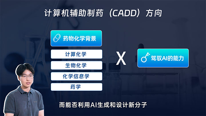 CADD即计算机辅助药物设计,专注于药物研发的早期分子设计与优化阶段。它运用计算机相关技术,预测分子结构与性质、及药物分子和受体生物大分子之间的相互作用机制。CADD背景的人才通常拥有如计算化学、药物化学、生物化学、药学、化学信息学等药物化学专业背景,并熟练掌握药物设计软件。对于这类人选而言,对药学的深入分析为其加入AIDD领域奠定了坚实的理论基础,而能否在AIDD领域脱颖而出,关键在于他们如何巧妙运用人工智能技术来生成和设计新药物分子。